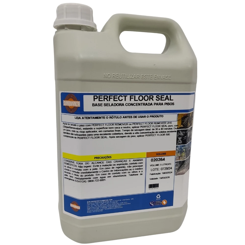 Base Seladora Concentrada para Pisos PERFECT FLOOR SEAL é uma base seladora com altíssimos teores de resinas com excepcional nivelamento que proporciona a formação de um filme de altíssima resistência e brilho, facilitando a aplicação e rendimento do acabamento final. Pode ser utilizada em pisos Paviflex, mármores, granilite, granitina, cimento polido, pisos com pintura epóxi e outros. Penetra nos poros, aderindo firmemente nos pisos.