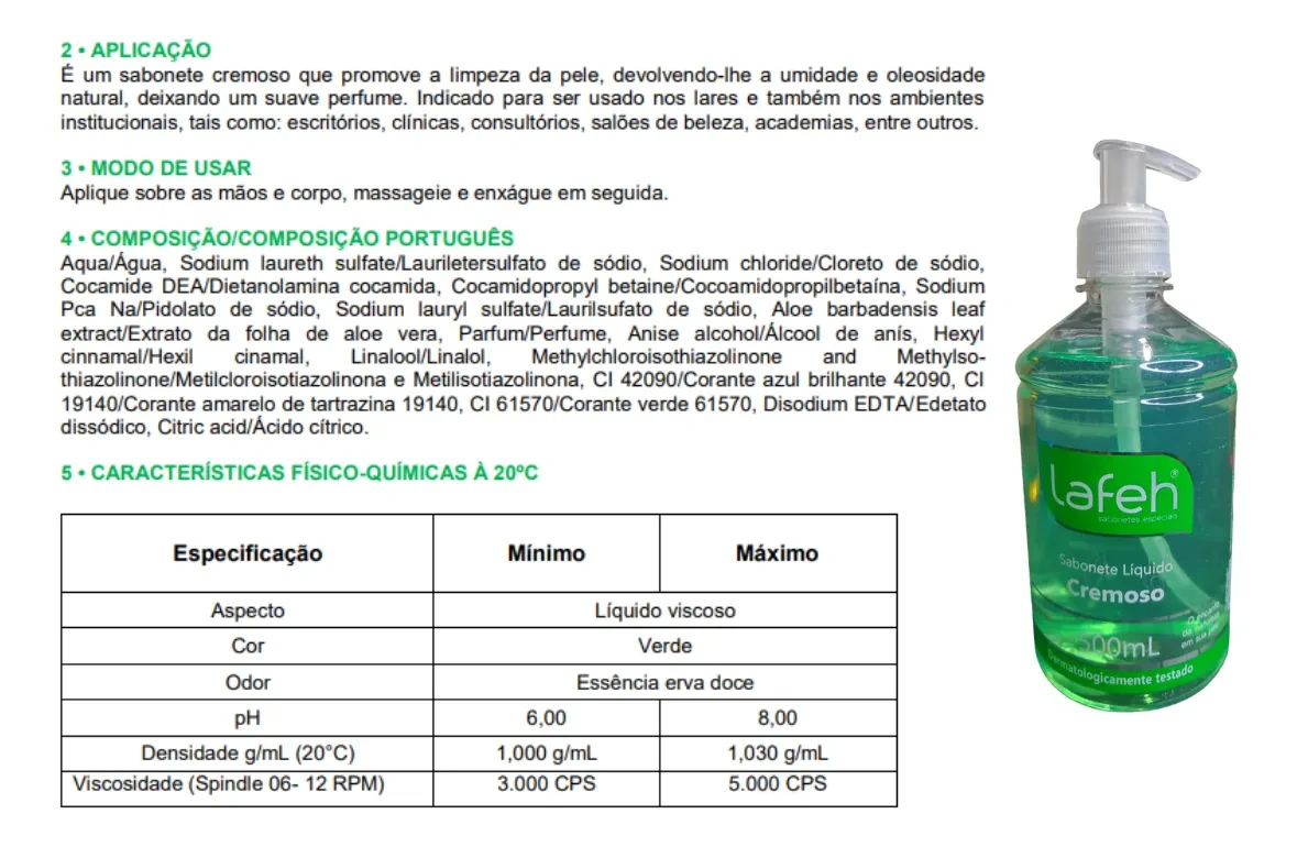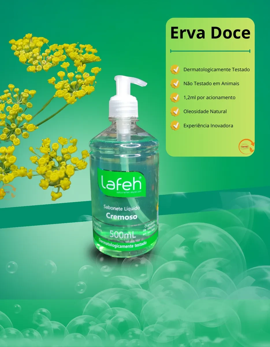 SABONETE LIQUIDO CREMOSO LAFEH ERVA DOCE é um sabonete especial com fórmula e fragrância escolhida especialmente para lhe proporcionar uma experiência inovadora.