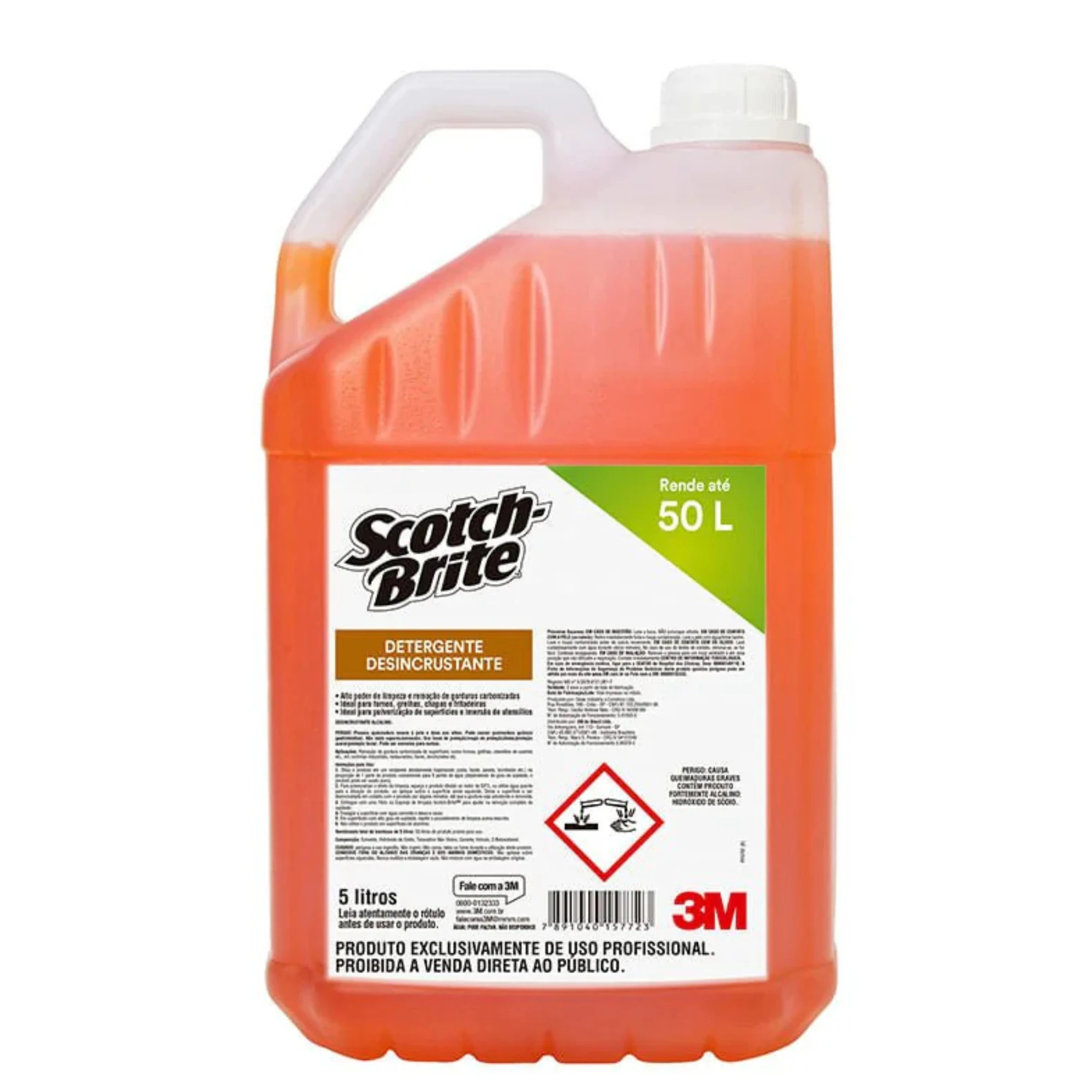 O Detergente Desengordurante Scotch-Brite™ apresenta alta espumação, alta viscosidade e não tem adição de fragrância. Deve ser usado com luvas. Disponível em bombonas de 5 litros.