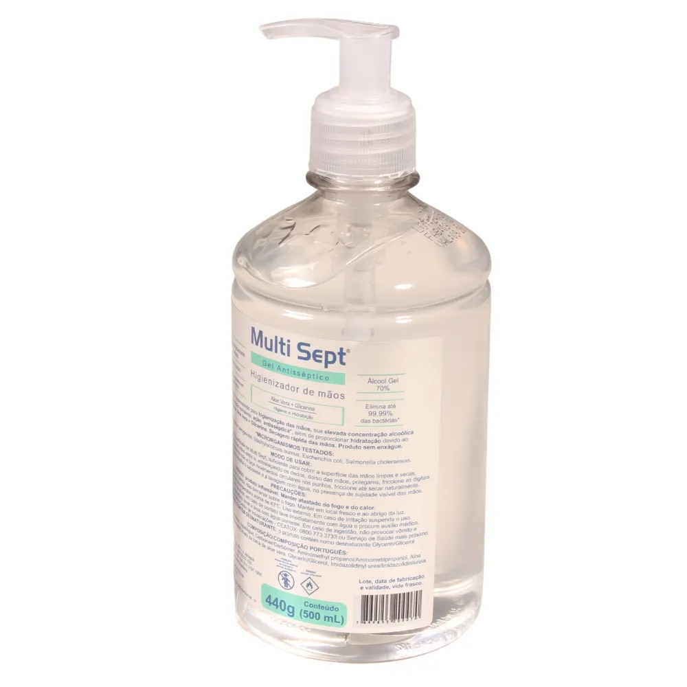 Álcool em Gel 70% Multisept Antisséptico 500ml com Válvula Pump Higienizante para as Mãos Frasco