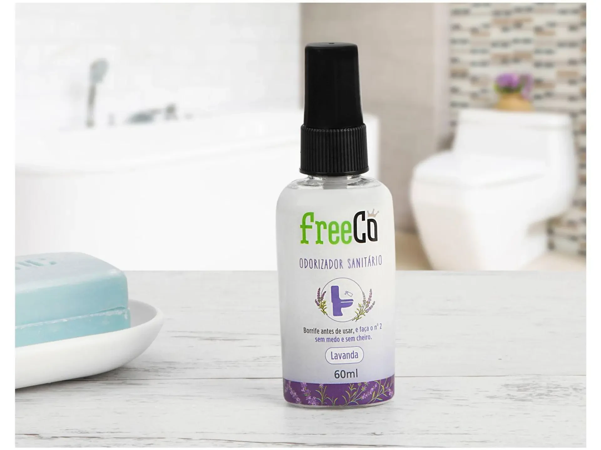 Com fragrância de lavanda, FreeCô é 1º bloqueador de odores sanitários do Brasil, eliminando de forma definitiva o mau cheiro do nº2 e também o constrangimento em utilizar o banheiro. Esta versão com 60 ml é ideal para deixar em banheiros e lavabos. Na sua casa ou no trabalho.