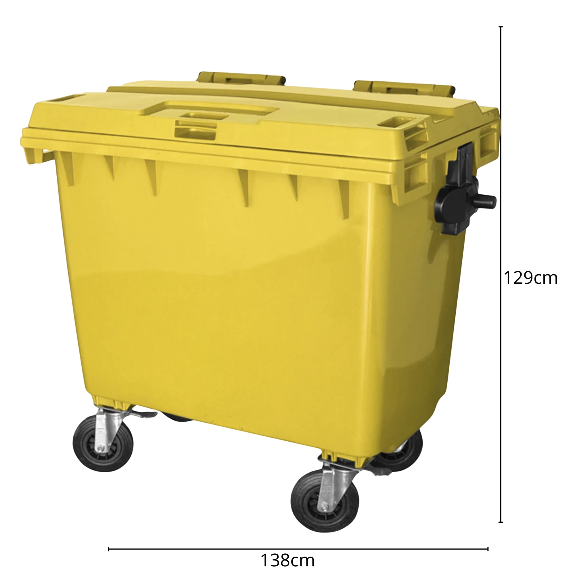Imagem - Lixeira Container Contentor Plástico para Lixo com Tampa e Rodas 1000 L Amarelo