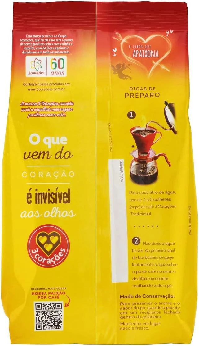 Há mais de 40 anos, o Café 3 Corações Tradicional leva a mesa dos consumidores, o prazer do sabor equilibrado, forte, com aroma intenso e que promove a cada amanhecer, experiências apaixonantes ao lado de quem mais amamos. Um clássico com qualidade de origem mineira, trazendo de suas raízes o gosto perfeito a cada xícara.