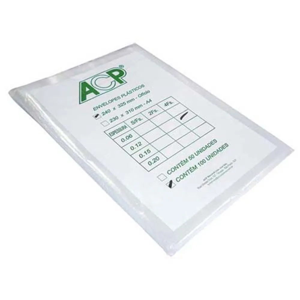 Envelope Plástico Ofício 24x33cm 0,12mm de Espessura com 4 Furos Pct/100