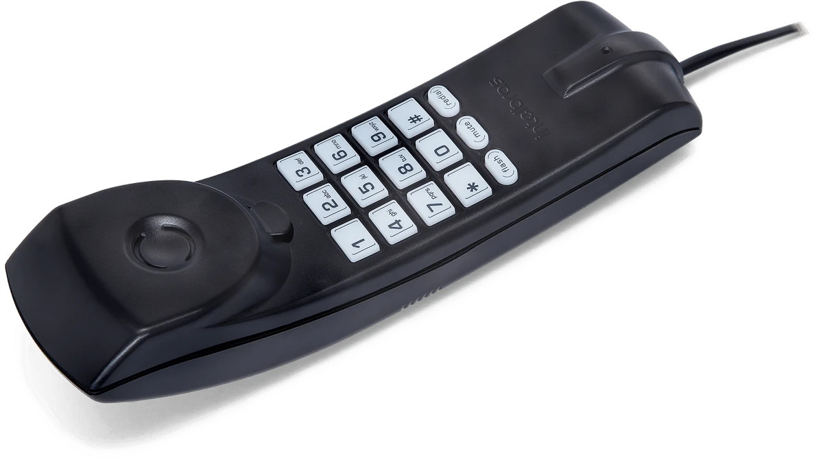 Acionador no fone (tecla liga/desliga) Cabo telefônico ligado diretamente ao fone Funções: mudo, rediscar e flash 2 níveis de volume de campainha Cabo telefônico de longo alcance