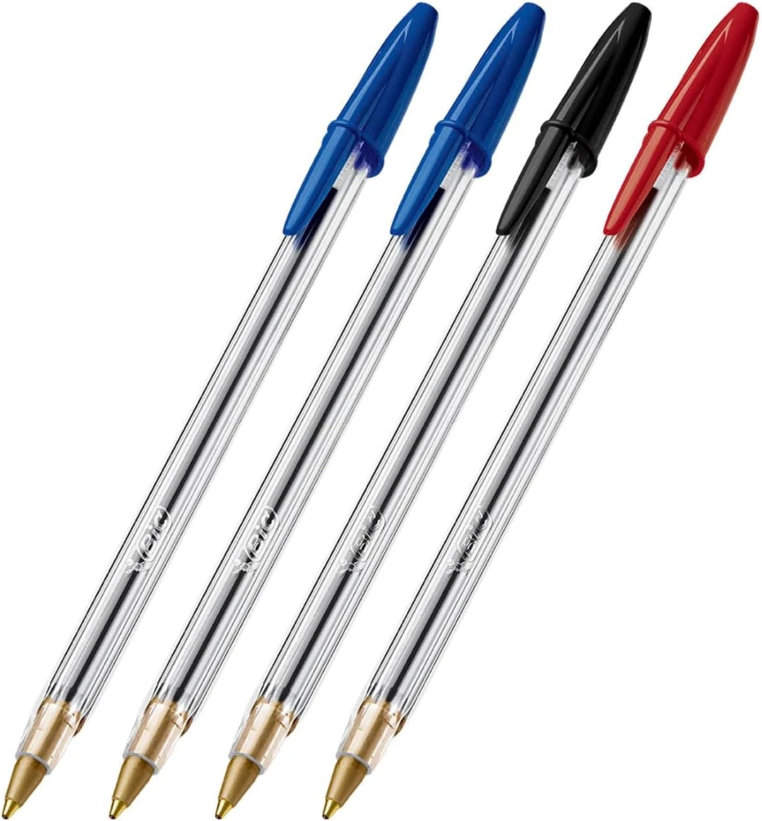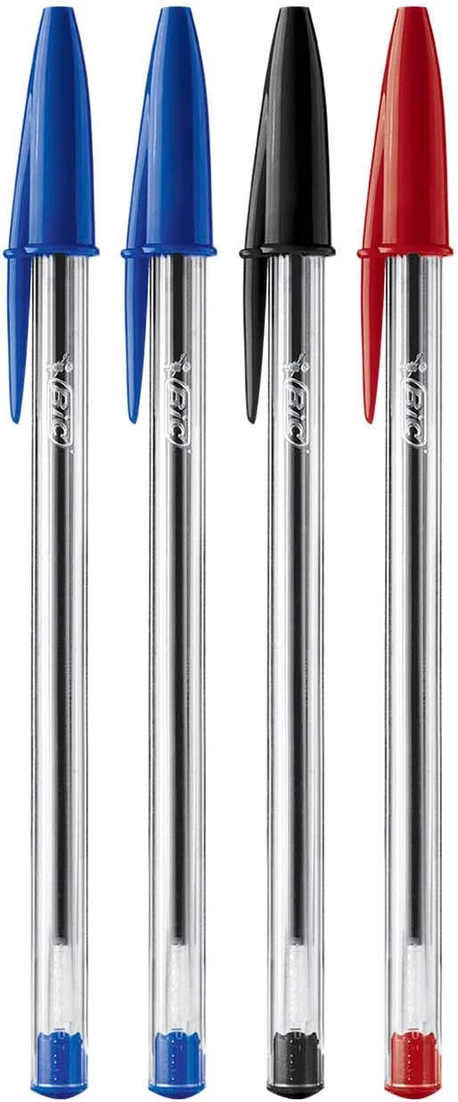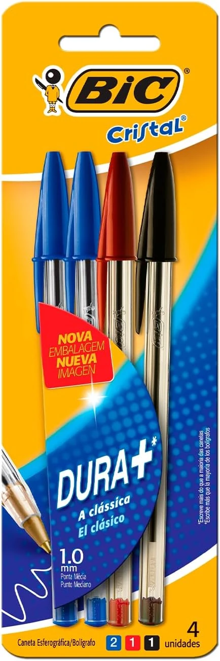 Caneta Esferográfica 1.0mm Ponta Média Cristal 3 Cores BT/4 (2 Azuis, 1 Preta e 1 Vermelha) BIC
