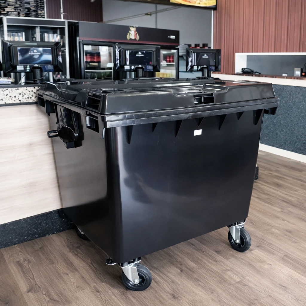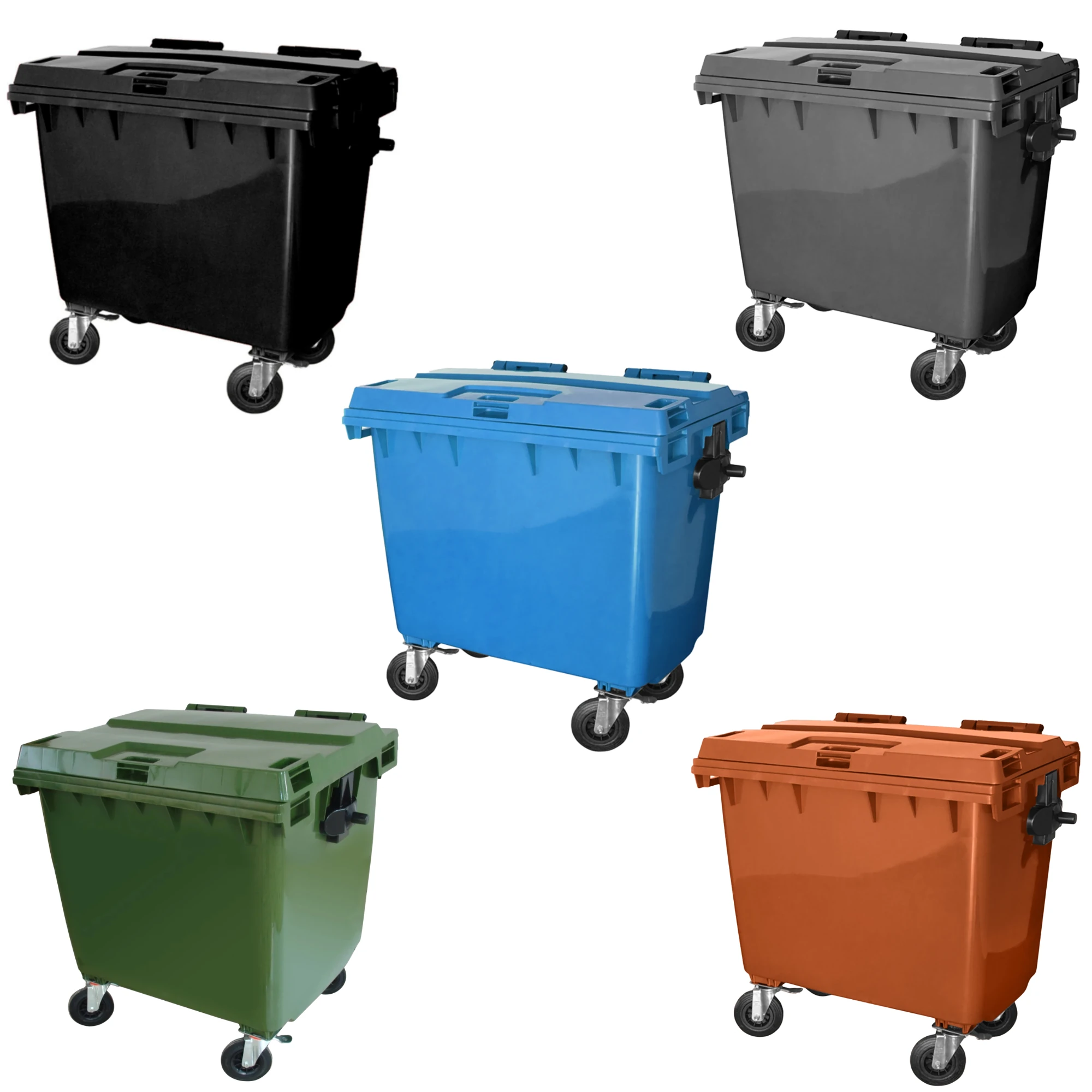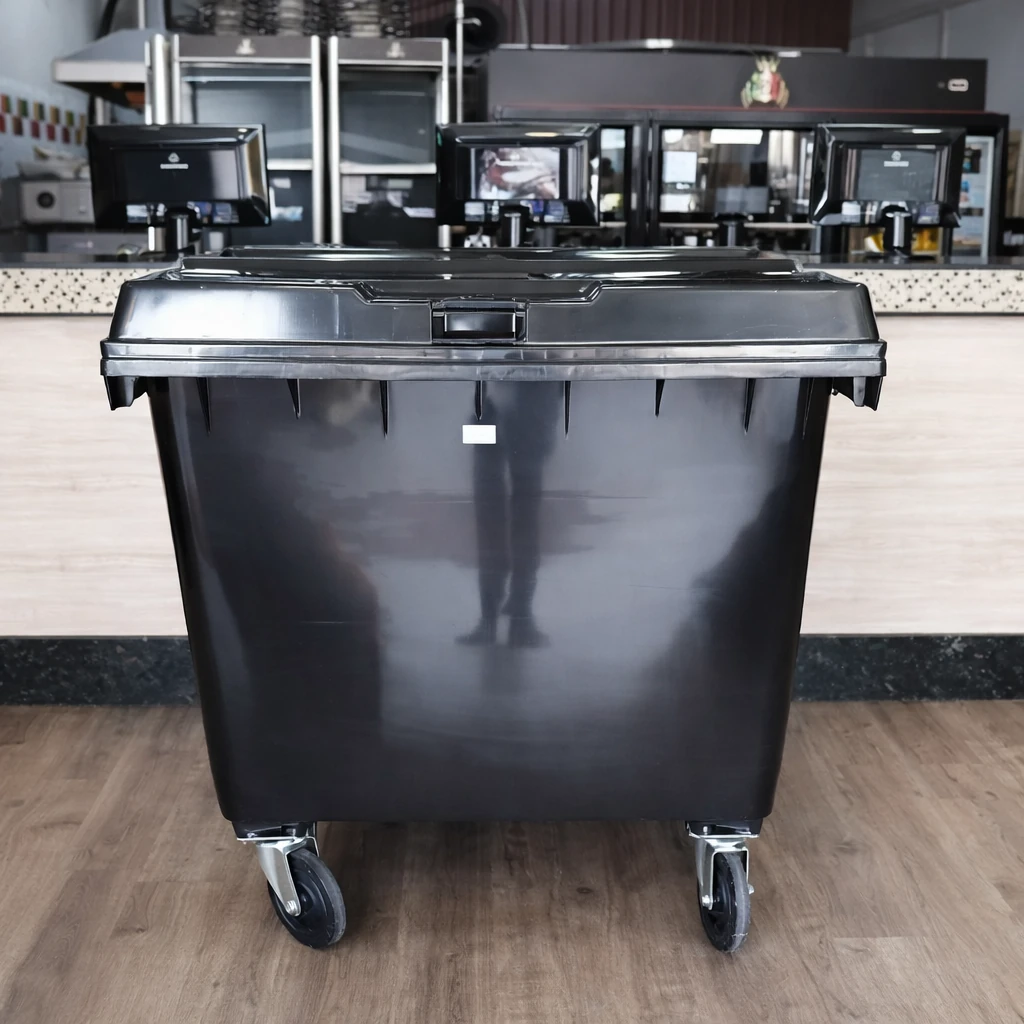 Imagem - Lixeira Container Contentor Plástico para Lixo com Tampa e Rodas 1000 L Preto