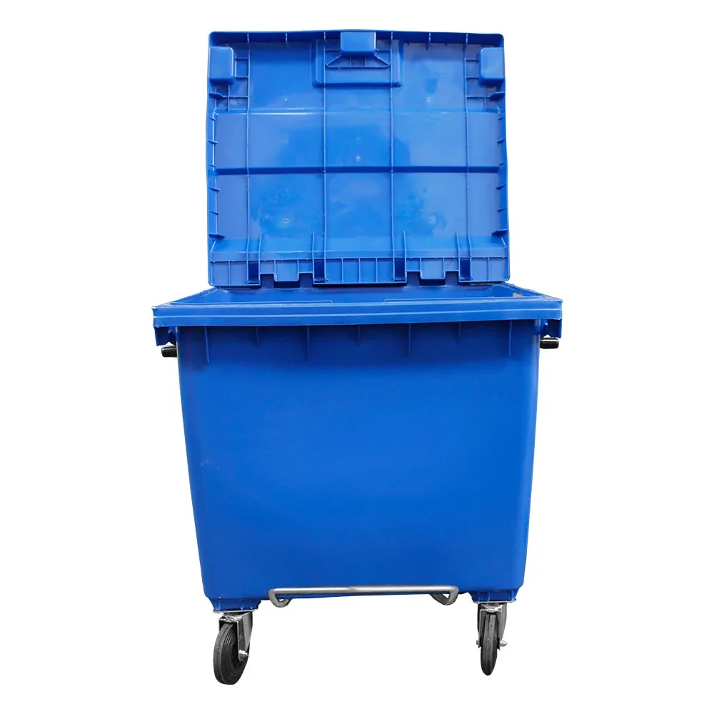 Imagem - Lixeira Container Contentor Plástico para Lixo com Tampa e Rodas 1000 L Azul