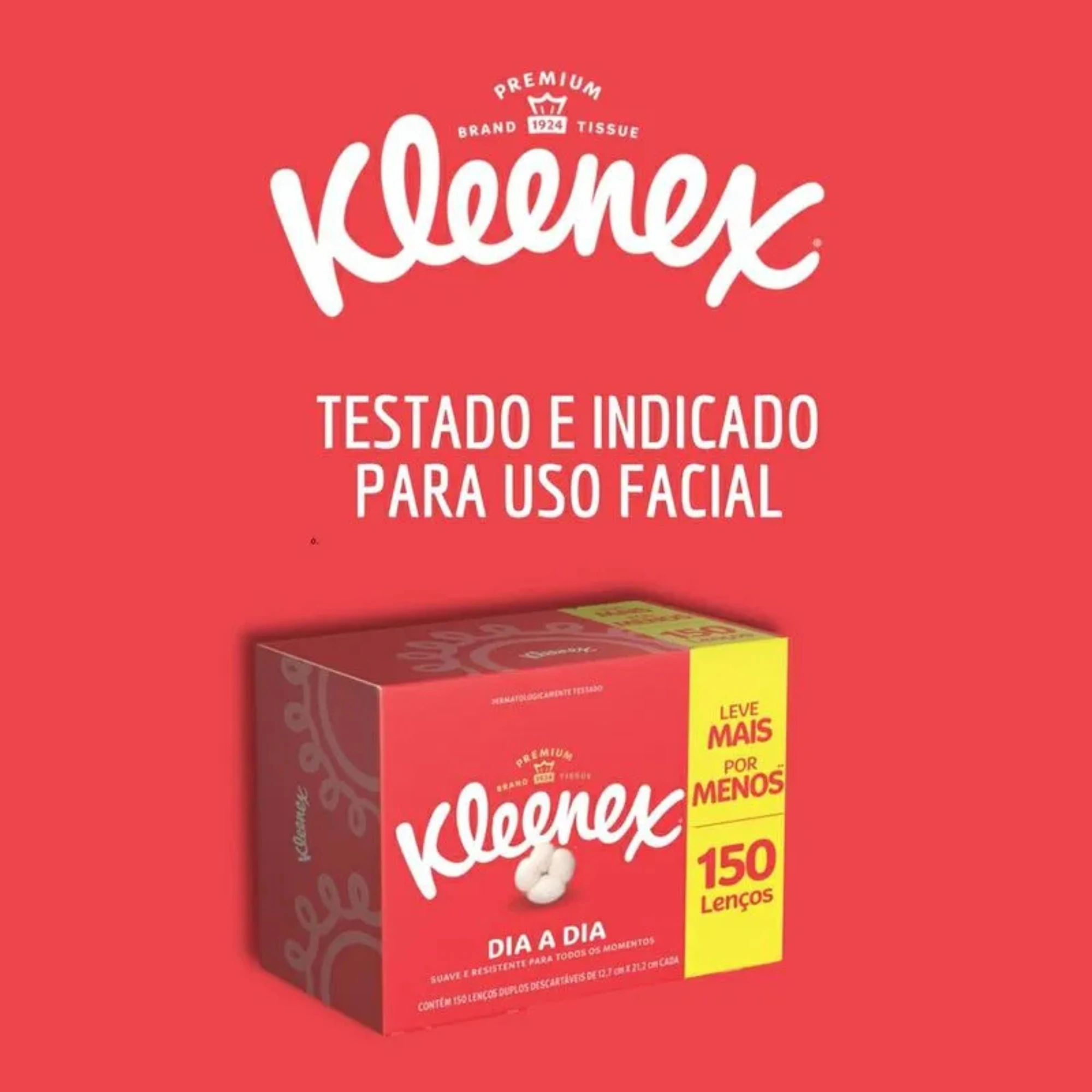 • Os lenços de Papel Kleenex são macios, não agridem a pele e evitam aquele tom avermelhado tão comum, além de poder ser usado em qualquer outra eventualidade do dia a dia.