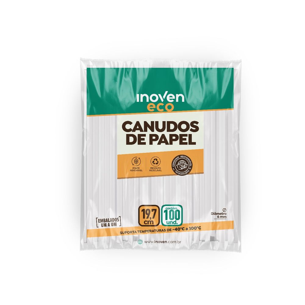 • 19768 Canudo de Papel Biodegradável 6mm 19,7cm Branco c/100