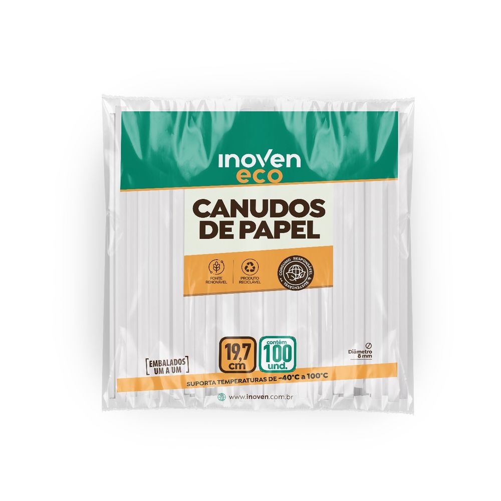 Canudo de Papel Biodegradável 8mm 19,7cm Branco c/100